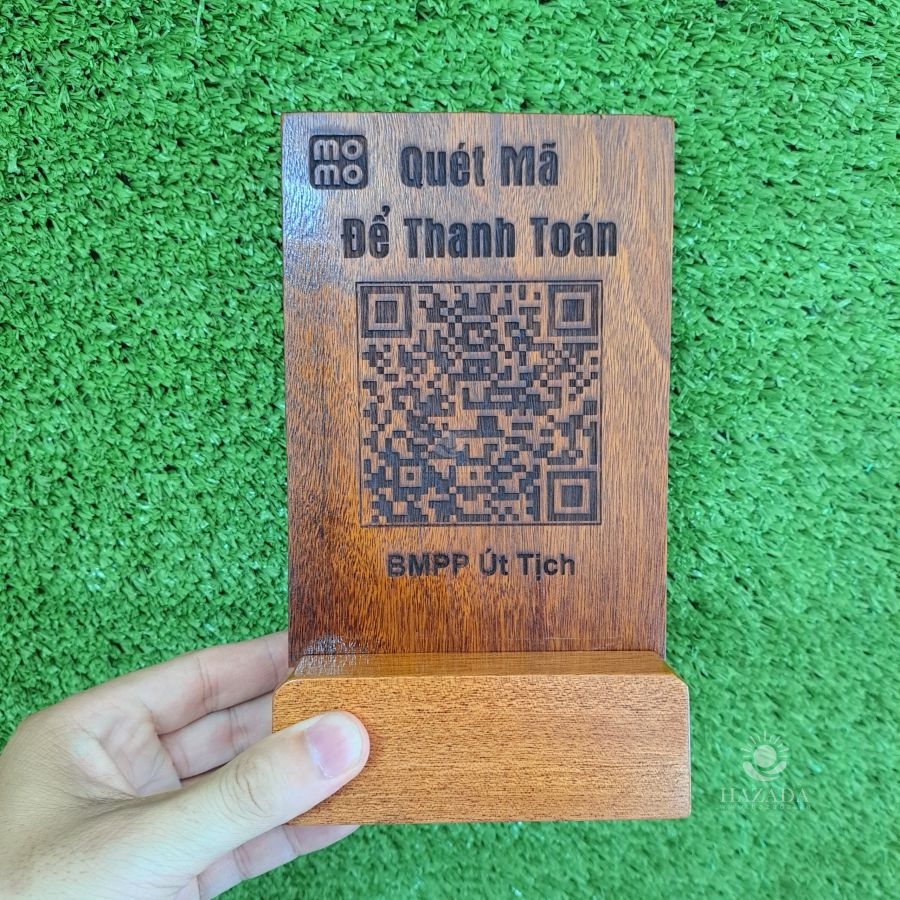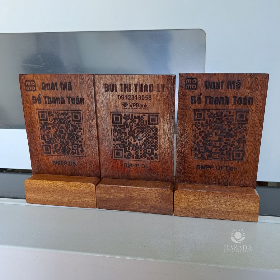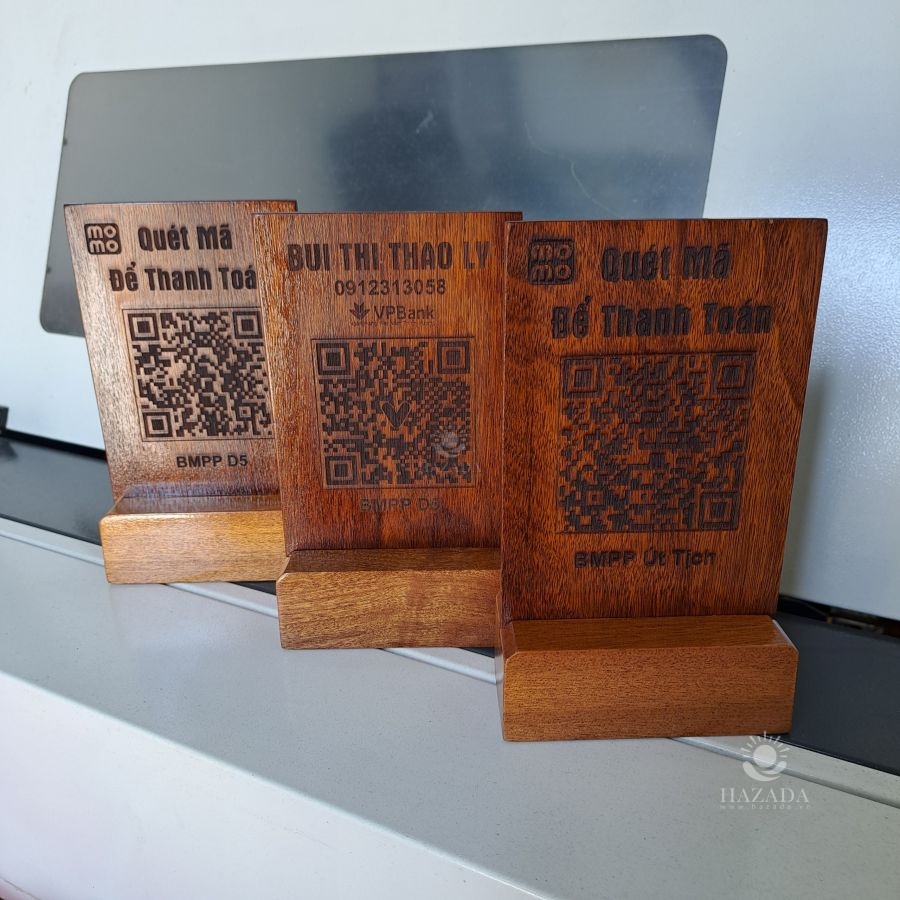 Bảng stk Qr code đế gỗ dài theo yêu cầu