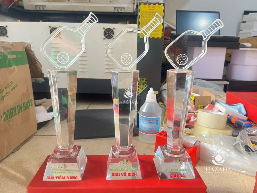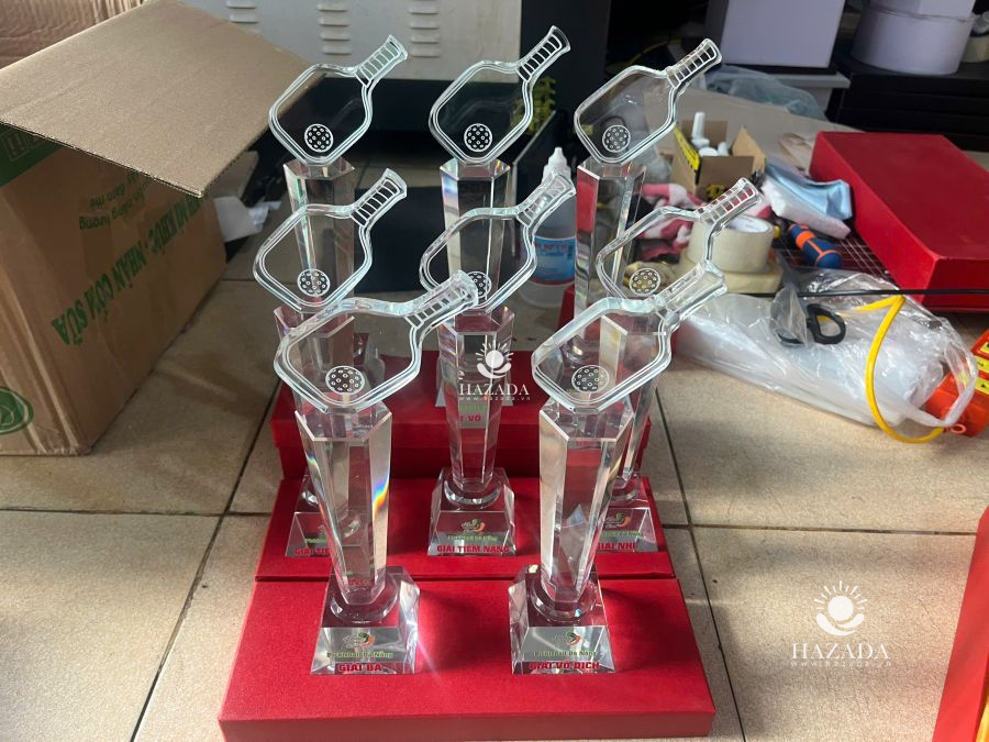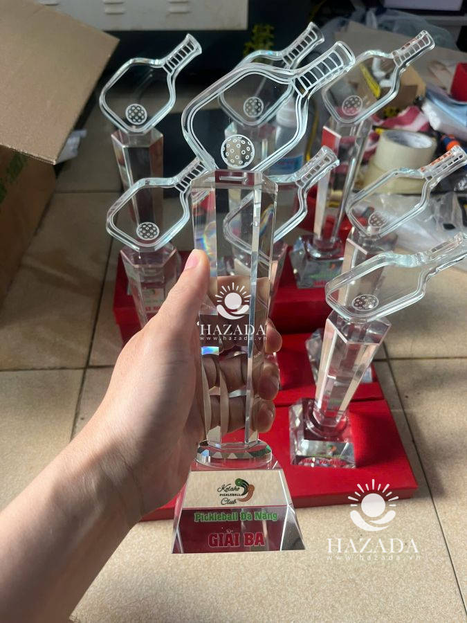 Chúng tôi chuyên sản xuất và cung cấp cúp pha lê Pickleball chất lượng cao, đáp ứng mọi yêu cầu về thiết kế và khắc laser theo ý khách hàng. Cam kết:
