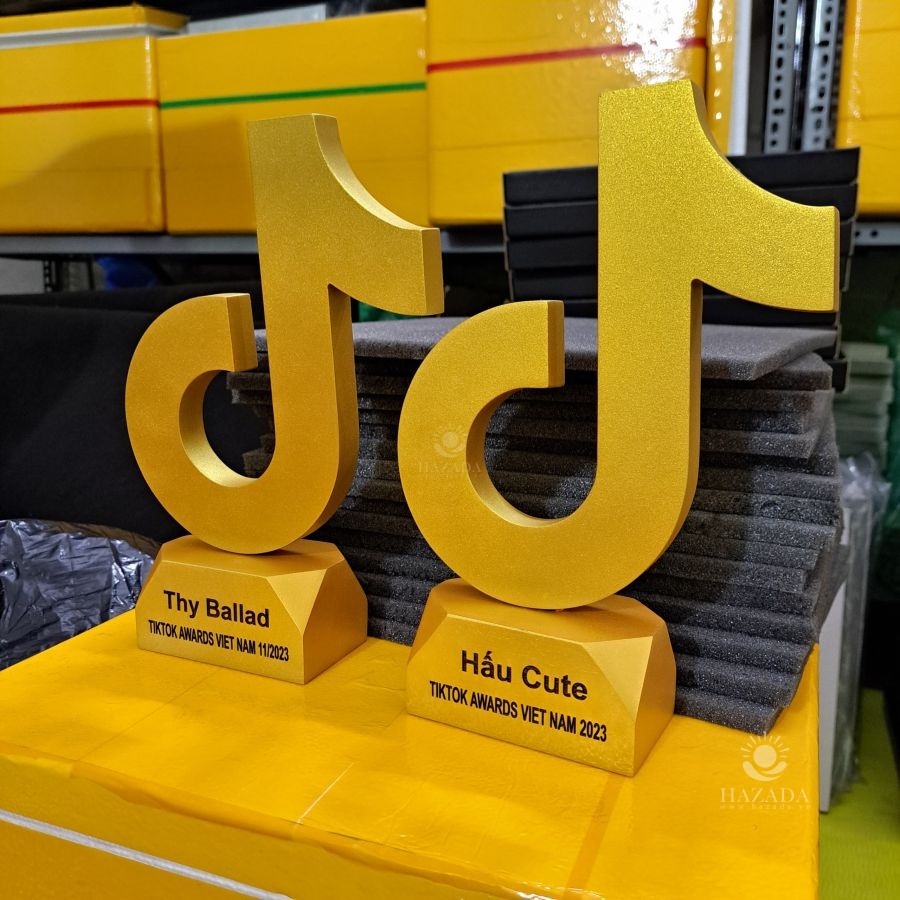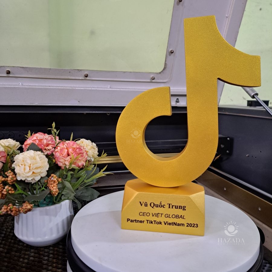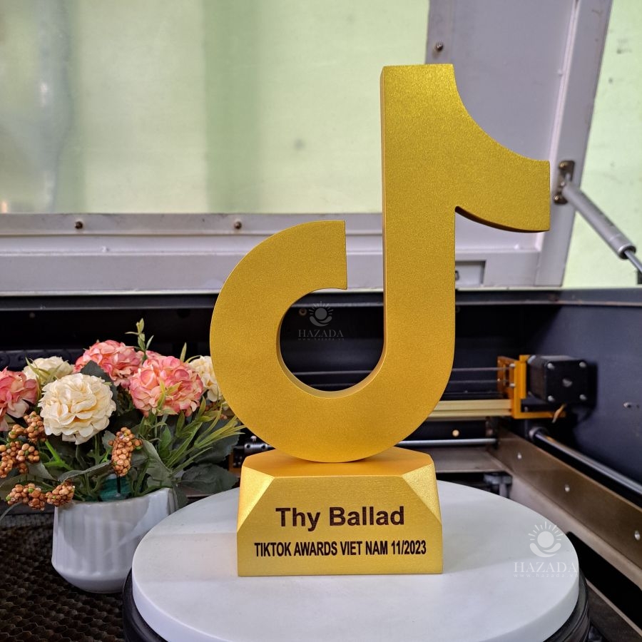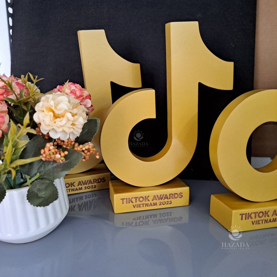 Biểu tượng decor cup vàng tiktok khắc theo yêu cầu