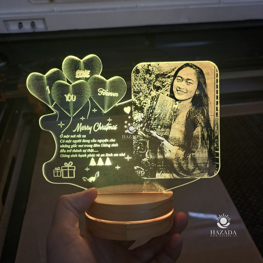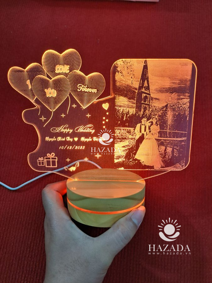 Đèn Led 3D Khắc Hình Theo Yêu Cầu Đế Gỗ 16 Màu Hiệu Ứng Đẹp