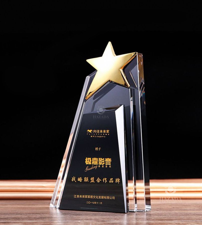 Kỷ niệm chương pha lê đen ghép pha lê trong sang trọng CPL27