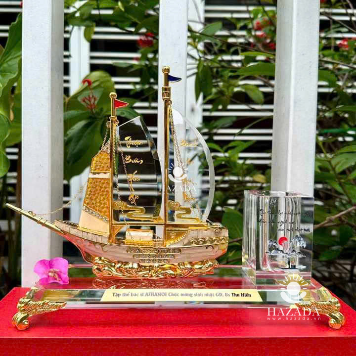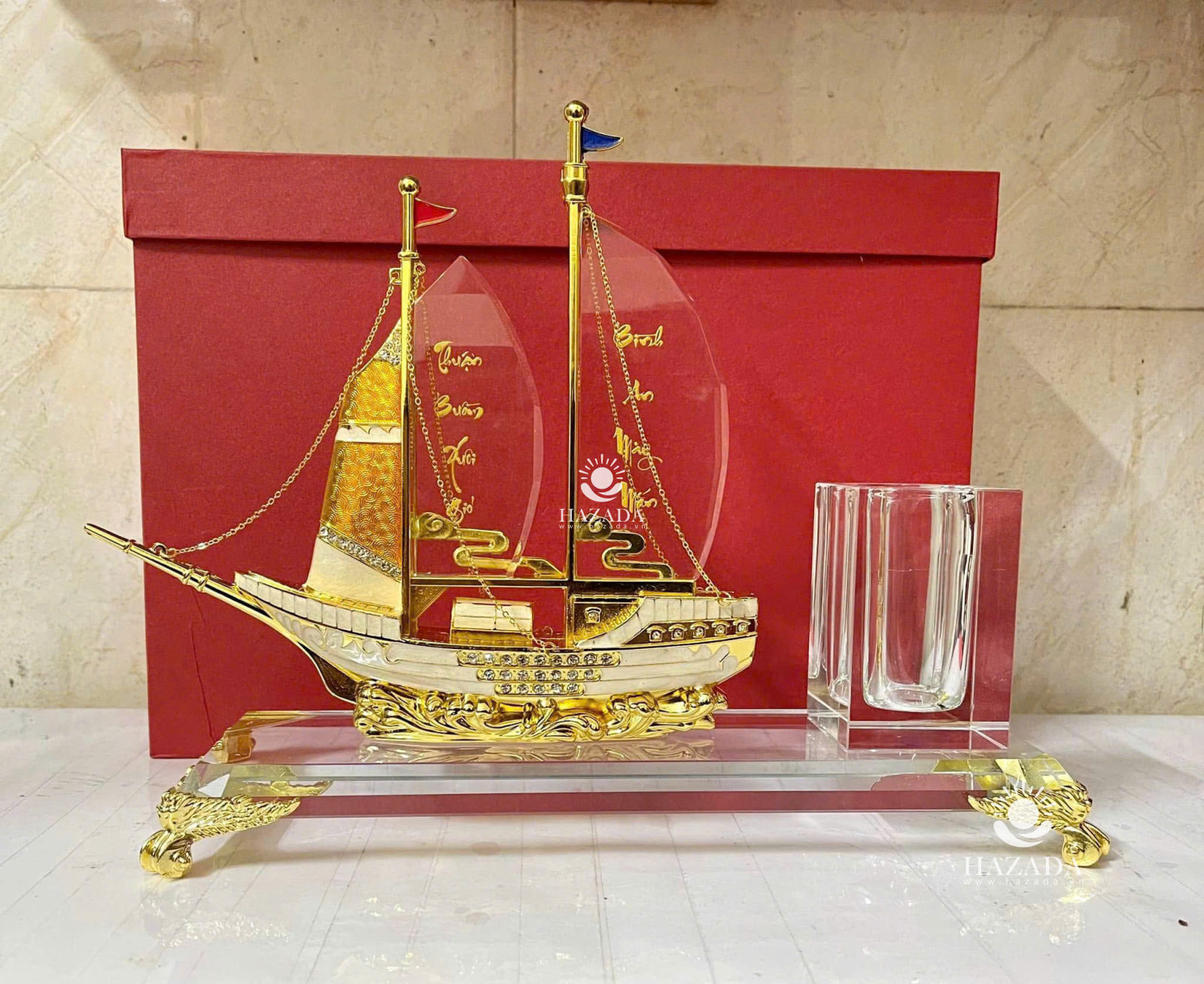 Ống Cắm Bút, Hộp Đựng Bút Doanh Nhân Chất Liệu Đồng Mạ Vàng 24K và Pha Lê Cao Cấp, Hộp Bút Để Bàn Làm Việc