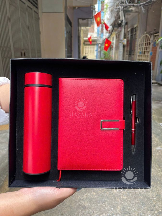 Bộ Set Quà Tặng Doanh Nghiệp Sổ Tay Bút Tổ Ong Bình Giữ Nhiệt SET3